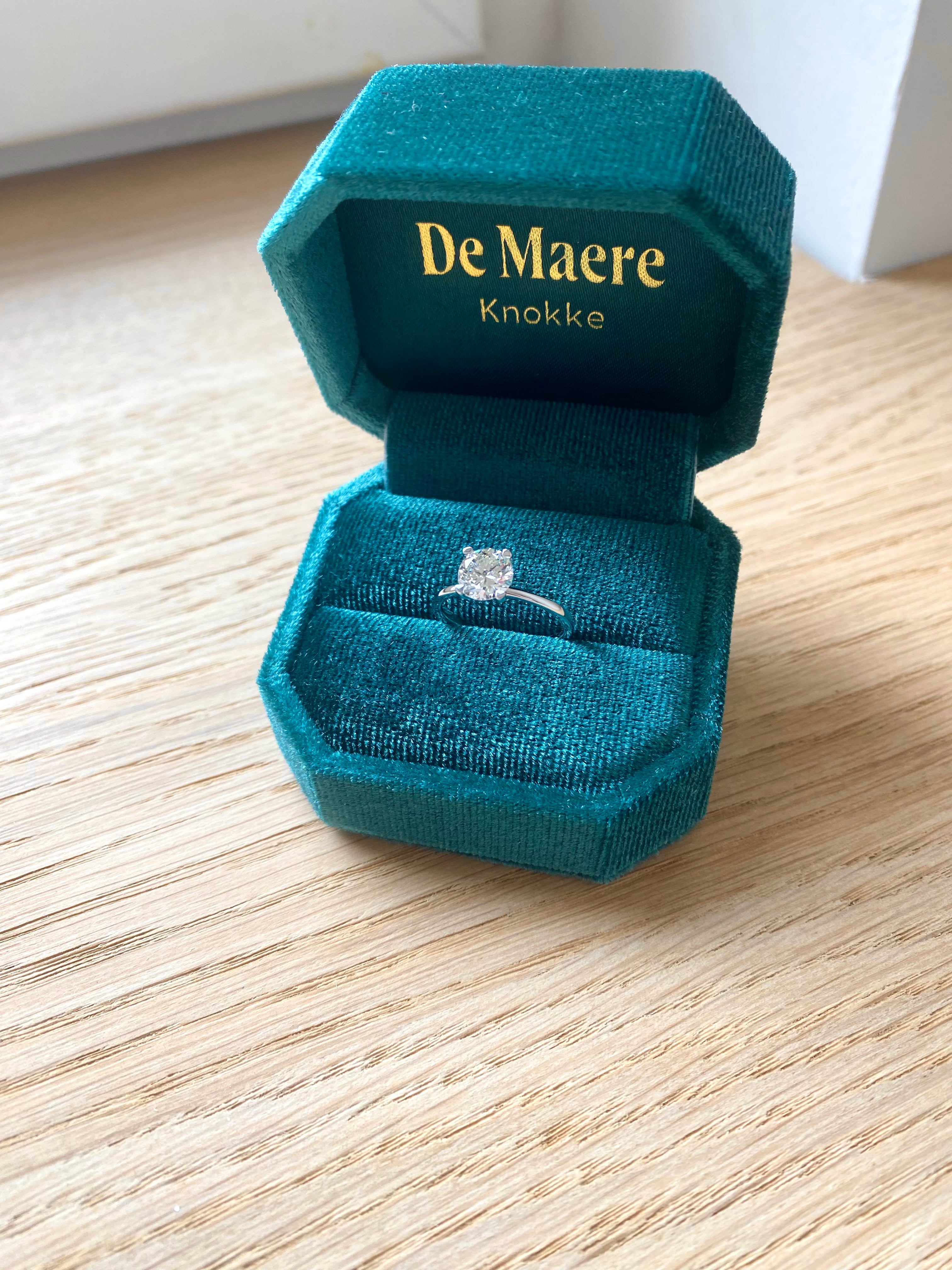 Enerzijds gaat het over de diamant, anderzijds zal ze uitleg geven over de zetting van de ring: dus de ringband zelf, want daar zijn er ook veel variaties in. Je krijgt de volledige uitleg en de vervolgstappen worden gemaakt.