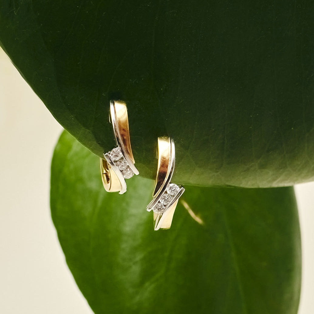 18K geel- en witgouden oorbellen met 6 natuurlijke diamanten van 0.30 ct