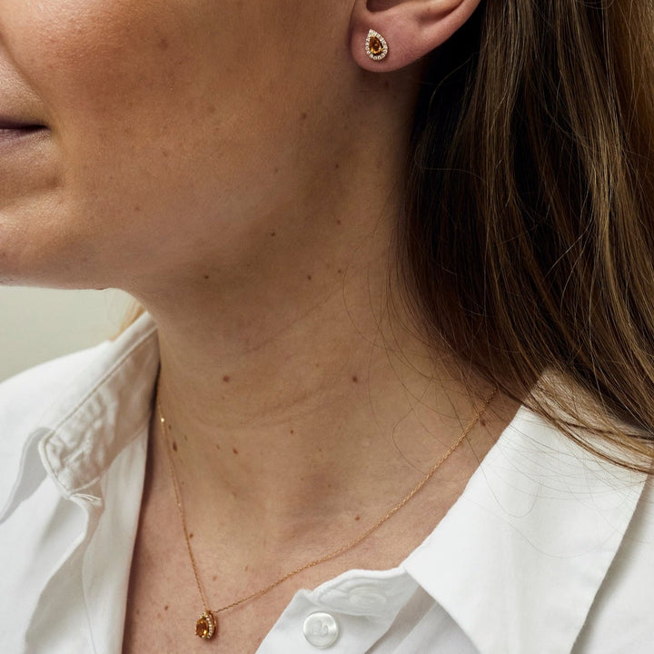 18K geelgouden ketting. met citrien (6x4mm) van 0.40 ct en 0.05 ct diamanten (kleur D, VVS1)