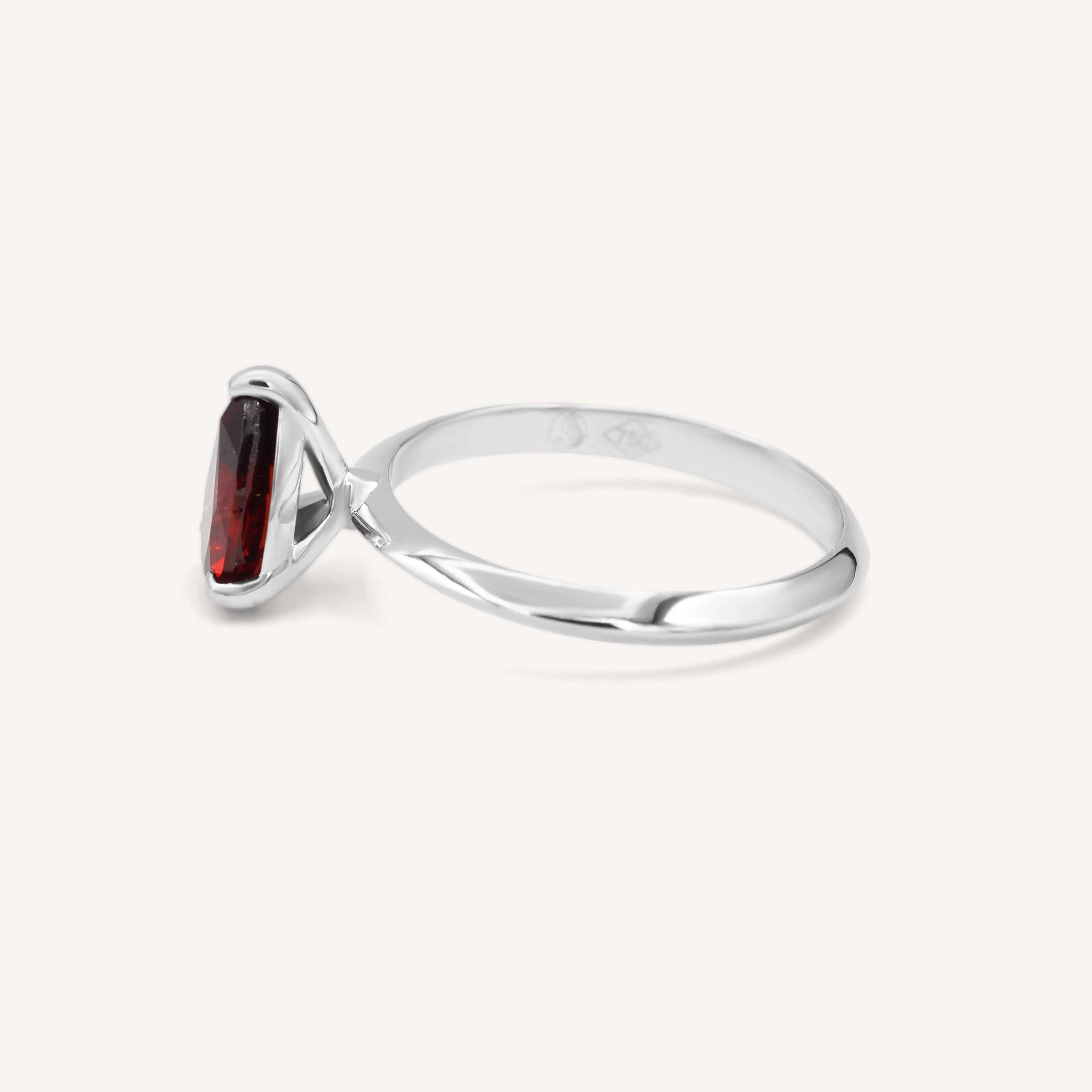 18 karaat witgouden ring met peervormige rode toermalijn van 6mmx8mm