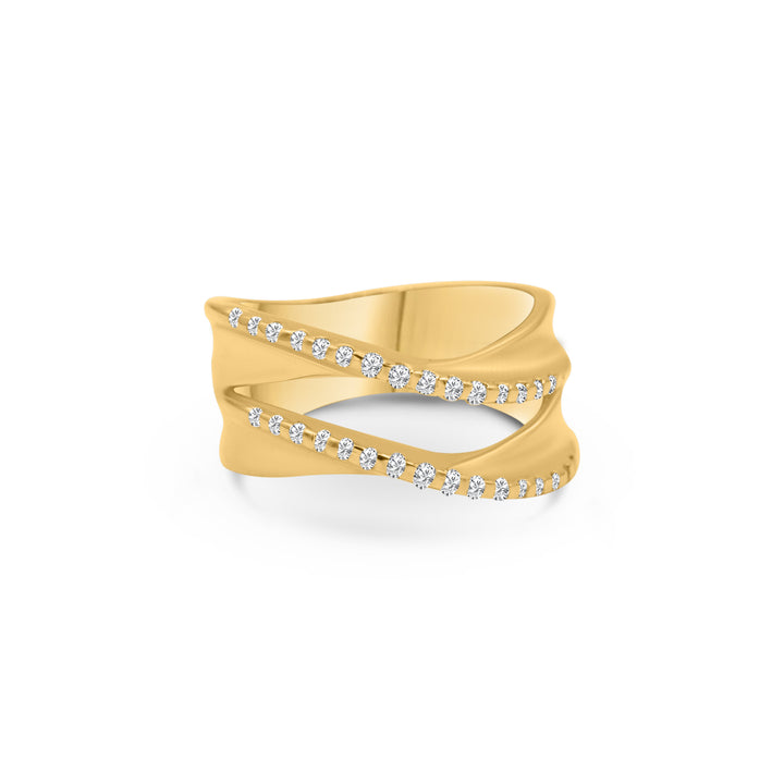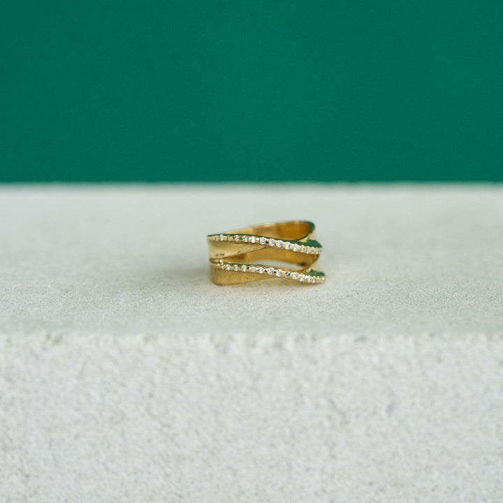 18K geelgouden ring met dubbele band met natuurlijke solitaire diamanten